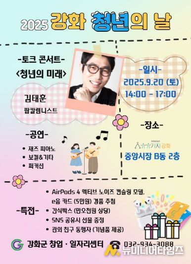 강화군 창업·일자리센터가 오는 20일 14시~17시, 중앙시장 B동 2층 유유기지 강화에서 2025 청년의 날 맞이 기념행사인 ‘청년, 로컬을 디자인하다’를 개최한다고 밝혔다.