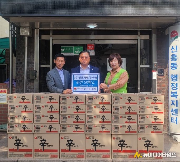 심규홍 신흥동장은 “라면을 기탁해주신 인성코퍼레이션㈜에 진심으로 감사하다”라며 “따뜻한 마음을 어려운 분들께도 잘 전달해 드리겠다”라고 말했다.