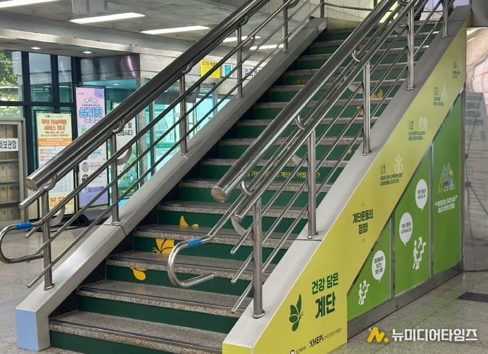 이번 ‘건강계단’ 조성은 보건복지부·한국건강증진개발원에서 실시한 비만예방 캠페인에 참여한 214개 지자체 가운데 목표 달성률 전국 1위를 기록, 6백만원 상당의 지원을 받아 이뤄졌다.
