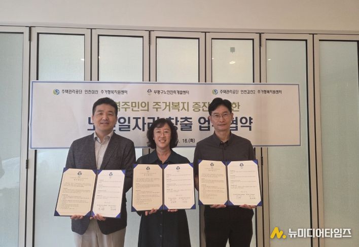 부평구 노인인력개발센터는 지난 16일 주택관리공단 산하 주거행복지원센터 2곳과 ‘시니어주거복지지원단’ 운영 관련 업무 협약을 체결했다.