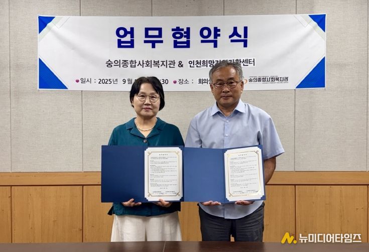 인천 미추홀구 숭의종합사회복지관(관장 : 고성란)은 2025년 9월 16일, 인천희망지역자활센터(센터장 : 이종만)와 지역사회 복지 증진과 취약계층 자립 지원 강화를 위한 업무협약(MOU)를 체결했다.
