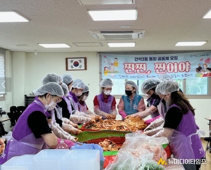 인천시 남동구 간석3동 행정복지센터는 통장자율회 공동체 모임 ‘찐찐, 찐이야’가 추석 명절을 맞아 이웃사랑을 실천하기 위해 김치 담그기 나눔을 했다고 19일 전했다.
