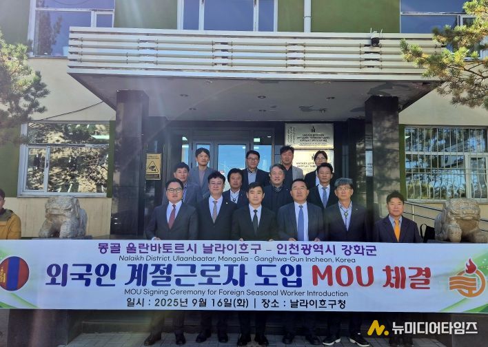 강화군은 지난 16일, 몽골 울란바토르시 날라이흐구를 공식 방문해 ‘외국인 계절근로자 도입에 관한 협약(MOU)’을 체결했다고 밝혔다.