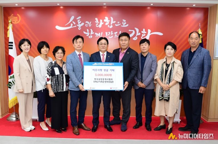 이번 기탁은 지역사회에 따뜻한 나눔 정신을 실천하고자 마련된 것으로, 성금은 강화군 내 소외계층을 지원하는 데 사용될 예정이다.