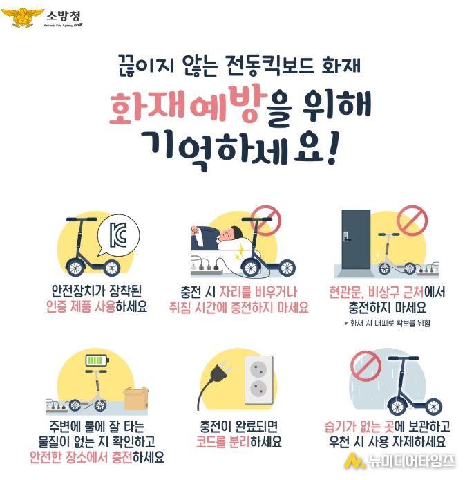 계양소방서는 전동킥보드 등 개인형 이동장치의 배터리 충전 과정에서 발생할 수 있는 화재를 예방하기 위해 집중 홍보에 나섰다고 19일 밝혔다.