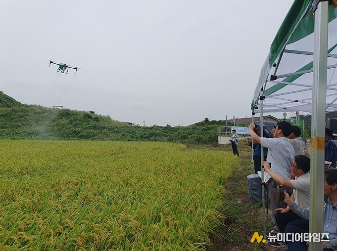 시연회에서는 드론방제기의 안전한 사용을 위한 교육과 함께 비산저감형 AI 노즐 드론방제기를 활용한 정밀 살포기술을 현장에서 선보였다. 참가한 농업인들은 높은 관심을 보이며 호응했다.