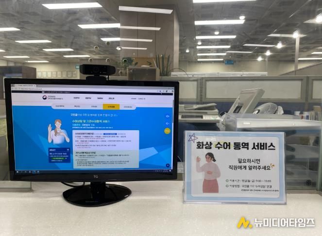 이에 구는 장애 민원인과 담당 공무원의 의사소통 어려움을 해소하고 원활한 민원 처리를 위해 민원실 내 ‘화상 수어 통역 전용 모니터’를 설치했다.