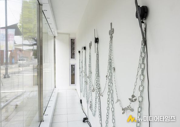 미디어월을 활용한 첫 번째 전시를 선보이는 얄루(Yaloo) 작가는 투명 디스플레이의 장점을 적극적으로 살려 작업했 '신인호 프롬 미추홀 Shininho From Meetchu Hole'이라는 작품은 금속 절단 조형물, 홀로그램 팬 등 설치 요소에 3D 애니메이션 영상이 결합한 형태다.