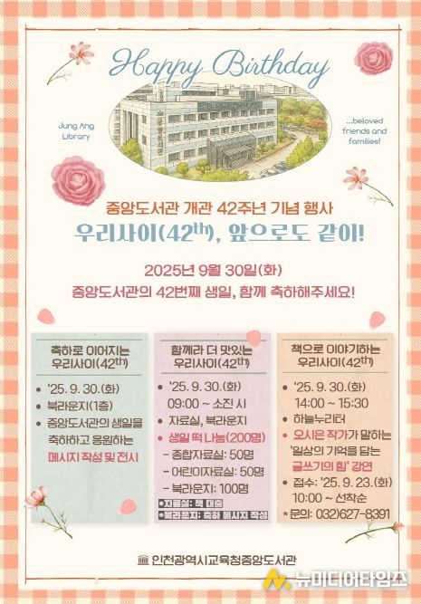 인천광역시교육청중앙도서관은 개관 42주년을 맞아 9월 30일에 기념행사를 개최한다.