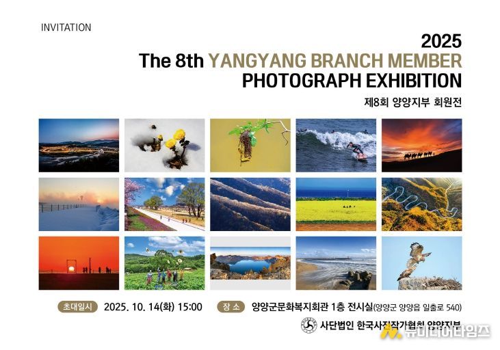 사단법인 한국사진작가협회 양양지부(지부장 오국성)가 10월 14일부터 19일까지 문화복지회관 1층 전시실에서 ‘제8회 한국사진작가협회 양양지부 회원전’을 갖는다.