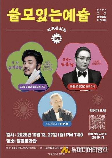 고성문화재단(이사장 함명준)은 10월 '쓸모있는 예술' 렉쳐콘서트 참여자를 모집한다. 지난 9월 연극·가드닝·미술을 주제로 다채로운 무대를 선보인 데 이어, 이번에는 국악과 클래식이라는 두 장르를 통해 군민에게 한층 풍성한 문화 향유의 기회를 제공할 예정이다.
