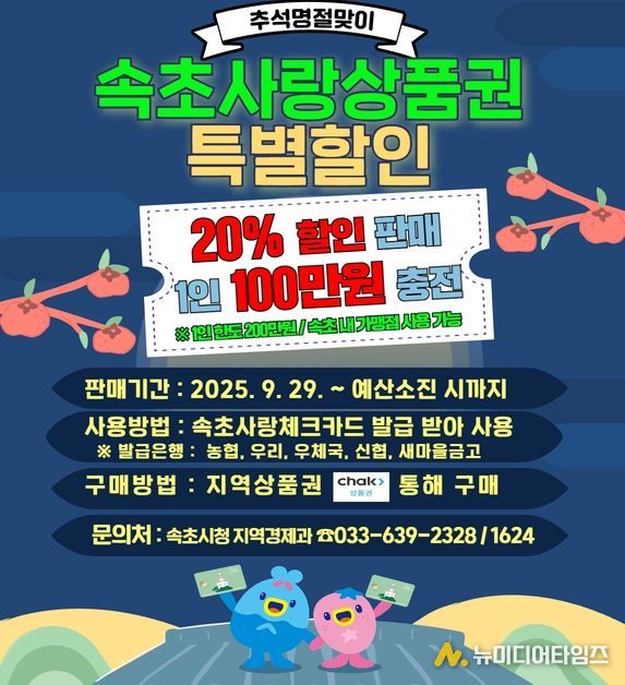 속초시가 추석 명절을 맞아 지역경제 활력 제고와 시민들의 장보기 부담을 덜기 위해 총 46억 원 규모의 ‘속초사랑상품권’을 발행한다.
