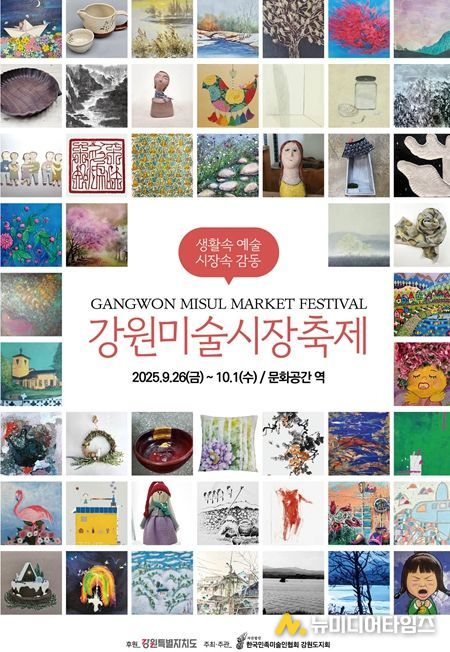 강원특별자치도는 (사)한국민족미술인협회 강원지회와 함께 '2025년 강원미술시장축제'를 9월 26일부터 10월 1일까지 6일간 남춘천역 1층 문화공간에서 개최한다.