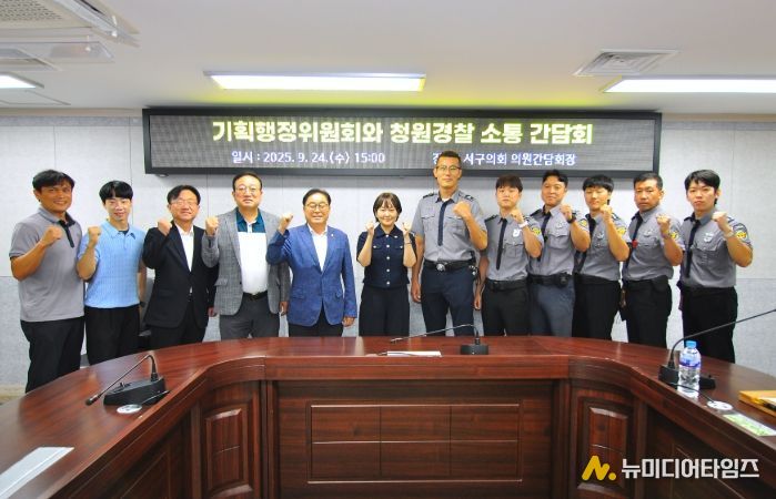 이날 간담회에는 기획행정위원회 소속 김원진 위원장, 한승일 의원, 김춘수 의원, 김학엽 의원과 함께 서구청 총무과장, 김진삼 청원경찰 반장 외 7명의 청원경찰이 참석했다.