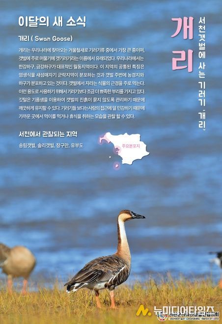 서천군지속가능발전협의회(대표회장 신상애, 이하 서천지속협)는 2025년 10월 ‘이달의 새’로 멸종위기 철새 개리(Anser cygnoides)를 선정했다고 29일 밝혔다.