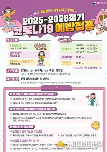 접종 일정은 ▲75세 이상, 10월 15일 ▲70~ 74세, 10월 20일 ▲65~ 69세, 10월 22일부터 가능하다. 면역저하자와 감염취약시설 입원·입소자는 연령 관계없이 10월 15일부터 접종할 수 있다.