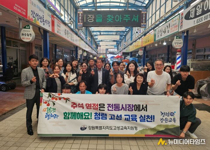 고성교육지원청은 추석 명절을 앞두고 9월 29일 간성전통시장과 거진전통시장에서 청렴 홍보지 배부와 함께 ‘청렴+(Plus) 나눔 추석 명절 전통시장 장보기’ 캠페인을 실시했다.