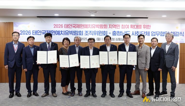 2026 태안국제원예치유박람회 조직위원회는 29일 도청 상황실에서 도내 4개 사회단체와 박람회 성공 개최를 위한 협력을 다짐하는 업무협약을 체결했다.