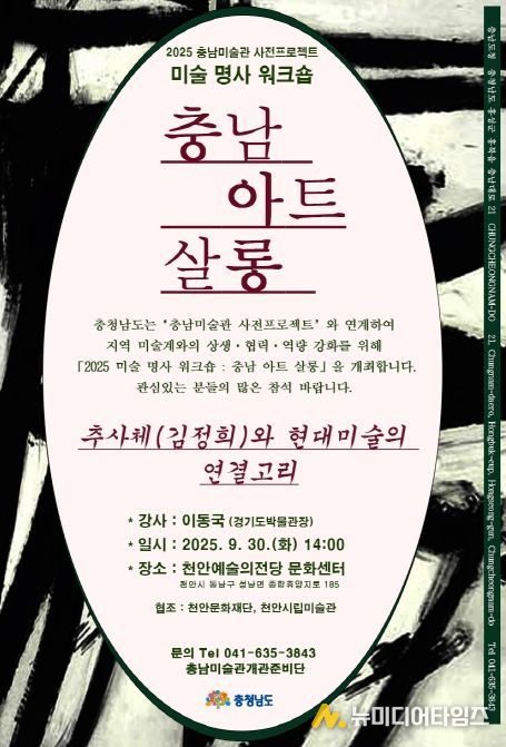 도 관계자는 “이번 강연은 전통 예술과 현대미술의 접점을 짚어보고 충남미술사의 뿌리와 정체성을 되돌아보는 시간이었다”라며 “앞으로도 명사 워크숍을 지속 추진해 충남미술관 및 지역 미술관 운영에 중요한 밑거름으로 삼을 것”이라고 말했다.