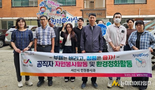 충남 서산시 민원봉사과는 30일 읍내동 부춘1로 일원에서 도로변 환경정화, 두리사랑보호작업장에서 자원봉사활동을 펼쳤다고 밝혔다.