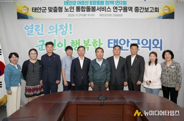 태안군의회 의원연구단체 ‘태안군 어르신 통합돌봄 정책 연구회’는 9월 29일 오전 10시, 태안군의회 간담회장에서 '태안군 맞춤형 노인 통합돌봄서비스 정책 연구' 중간보고회를 개최했다.