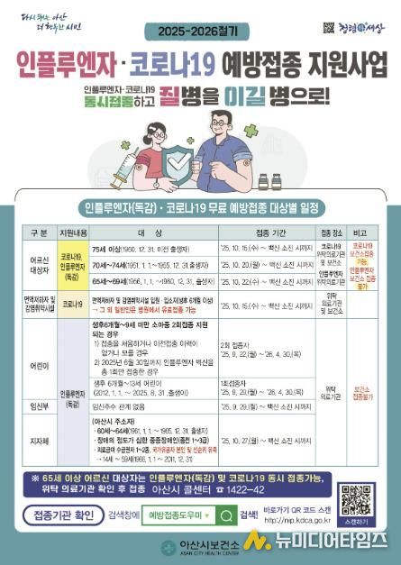 최원경 아산시보건소장은 “코로나19는 매년 새로운 변이가 발생하는 만큼 고위험군의 예방접종이 무엇보다 중요하다”며 시민들의 적극적인 참여를 당부했다.