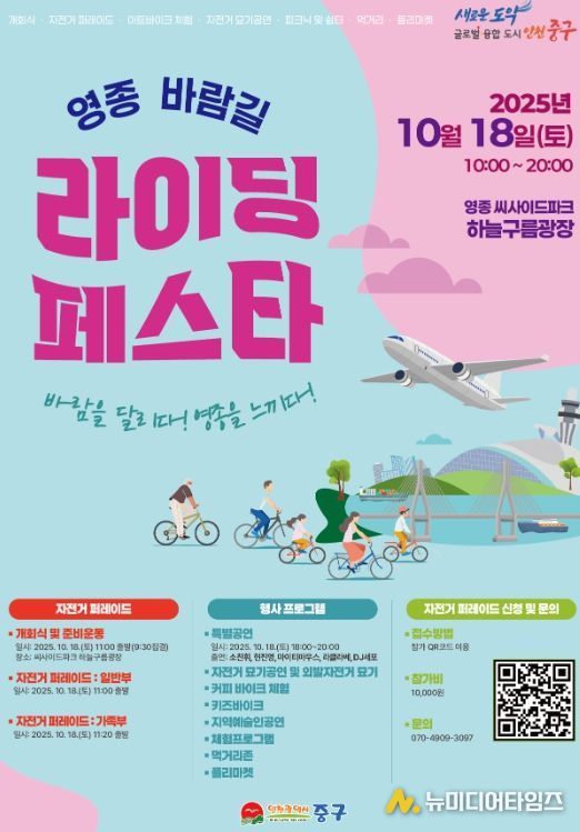 인천시 중구는 축제의 계절 가을을 맞아 오는 18일 영종 씨사이드파크 일원에서 ‘영종 바람길 라이딩 페스타’를 개최한다.