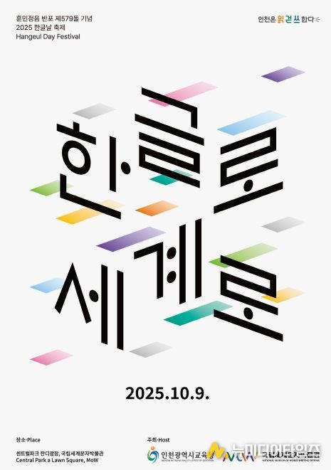 인천광역시교육청은 국립세계문자박물관과 함께 제579돌 한글날을 맞아 10월 9일 송도 센트럴파크 잔디광장과 국립세계문자박물관 일원에서 ‘한글로! 세계로!’를 주제로 한글날 축제를 공동 개최한다.