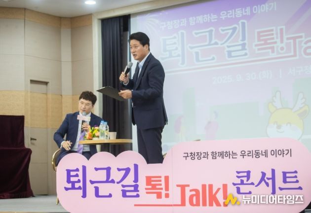 ‘퇴근길 톡! Talk! 콘서트’는 평소 구정 참여가 어려운 직장인들을 위해 야간 시간대에 진행되는 주민 소통 행사로, 강범석 구청장은 2023년 청라 권역, 2024년 검단 권역, 2025년 8월 가정‧신현원창‧석남‧가좌 권역 그리고 9월 검암경서‧연희 권역까지 모든 권역 구민과 직접 만나는 소통의 여정을 완성했다.