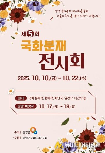 양양군 국화분재연구회(회장 윤종욱)는 오는 10일부터 22일까지 13일간 양양군농업기술센터에서 ’제5회 국화분재 전시회‘를 개최한다.