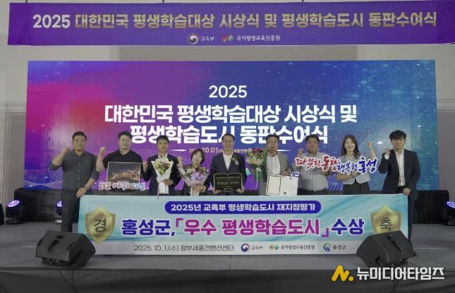 홍성군은 지난 1일 정부세종컨벤션센터에서 열린 ‘2025 대한민국 평생학습대상 및 평생학습도시 동판수여식’에서 교육부장관 기관표창을 수상하며, 전국 평생학습 활성화를 선도하는 도시로 위상을 높였다.