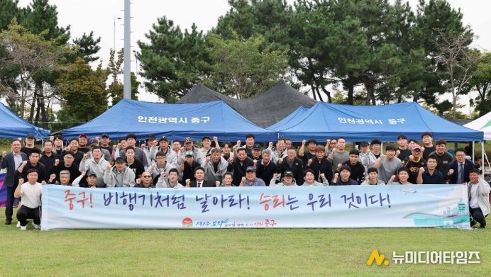 김정헌 인천 중구청장이 지난달 30일 인천환경공단 송도스포츠파크에서 열린 ‘인천광역시 환경공무관 노조 창립 기념 체육대회’에 함께해 환경 현장에서 묵묵히 봉사하는 환경공무관들을 응원했다.