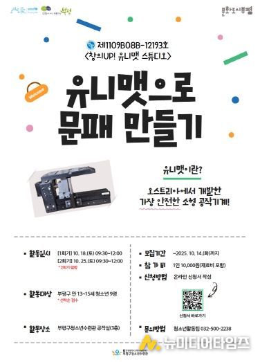 부평구 청소년수련관은 오는 14일까지 부평 내 14~16세 청소년을 대상으로 ‘창의 UP! 유니맷 스튜디오!’ 참가자를 모집한다.