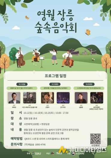 영월군은 오는 10월 12일, 18일, 25일 오후 3시부터 5시까지 세계유산 장릉 경내에서 ‘영월 장릉 숲속 음악회’를 개최한다.