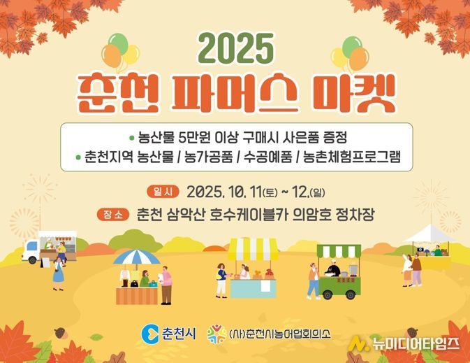 홍미순 춘천시 농업정책과장은 “가을에 어울리는 따뜻한 장터가 될 것”이라며 “농촌과 도시가 어깨를 맞대는 소통의 장을 꾸준히 이어가겠다”고 말했다.