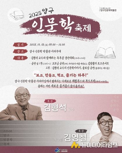 양구군은 오는 18일 오전 9시부터 오후 4시까지 양구인문학박물관 야외무대에서 ‘2025 양구 인문학 축제’를 개최한다. 이번 축제는 인문학의 가치를 널리 알리고 남녀노소 누구나 함께 즐길 수 있는 문화의 장을 마련하기 위해 기획됐다.