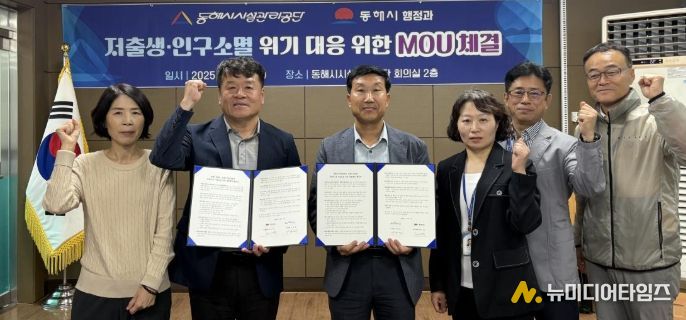 동해시시설관리공단과 동해시 행정과은 10월 1일, 인구소멸 관심지역인 ‘동해시’의 정주 생활 인구 확대 및 출산 장려를 위한 공동 협력체계 구축을 내용으로 하는 업무협약을 체결했다.