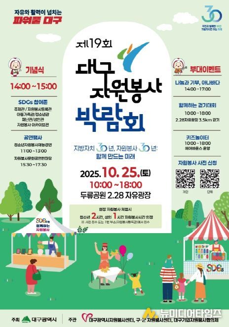 대구광역시는 시민들의 자원봉사 참여문화 확산과 자원봉사자들의 자긍심 고취를 위해 10월 25일, 두류공원 2·28자유광장에서 ‘제19회 대구자원봉사박람회’를 개최한다.