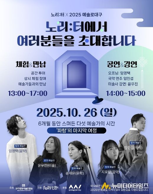 대구문화예술진흥원 문화예술본부는 ‘2025 예술인파견지원사업–예술로 대구’의 일환으로, ‘노리:터’와 협력해 추진한 예술 협업 프로젝트의 마지막 무대인 ‘선과 흥을 따라서: 김홍도와 신윤복’을 오는 10월 26일 오후 2시부터 개최한다.