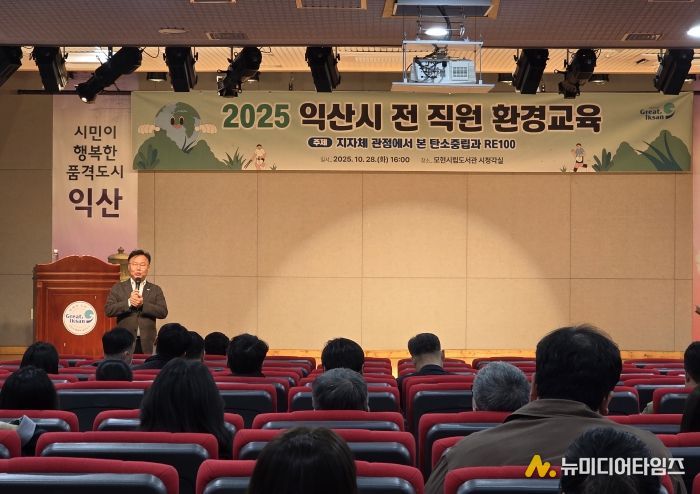 익산시는 28일 모현도서관 시청각실에서 '지자체 관점에서 본 탄소중립과 RE100'을 주제로 공무원 환경교육을 진행했다.