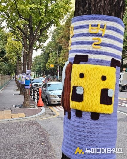 광명시 하안4동 주민자치회는 지난 4월부터 10월까지 직접 만든 뜨개옷을 하담길(하안주공 9·10단지 사이길) 가로수에 입히는 활동을 31일에 진행했다고 밝혔다.