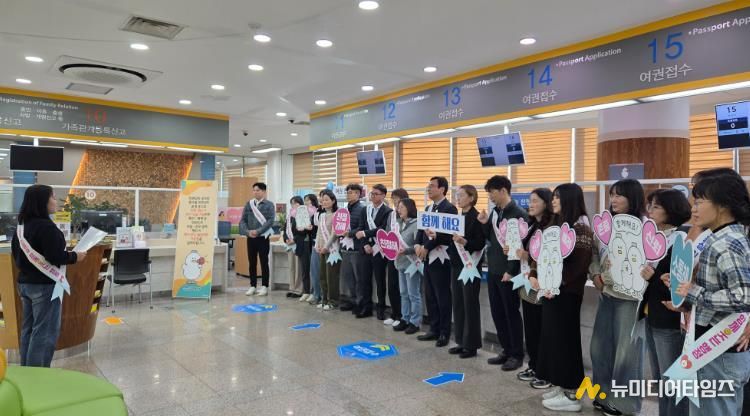 민원실 직원 20여명이 참여한 이번 캠페인은 민원실을 찾는 시민이 보다 친절한 응대를 받을 수 있도록 공무원의 서비스 마인드를 제고하고 민원인의 만족도를 높이기 위해 마련됐다.