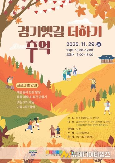 경기역사문화유산원 관계자는 “이번 행사는 경기옛길의 역사적 의미를 쉽고 재미있게 전달하고, 가족 단위 관람객들이 일상 속에서 문화유산을 즐길 수 있도록 기획됐다”며 “혜음원지라는 문화유산을 중심으로 역사 교육과 오락적 요소를 결합해 흥미롭고 의미 있는 시간을 제공할 것”이라고 전했다.