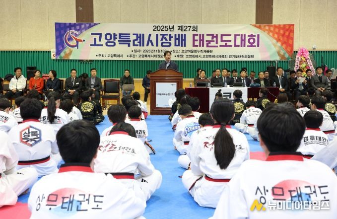 2025년 제27회 고양특례시장기 태권도대회가 16일 고양어울림누리 체육관에서 개최됐다. 이동환 고양특례시장은 “갈고닦은 실력과 기량을 유감없이 발휘해 후회 없는 경기를 펼쳐주길”이라고 말했다.