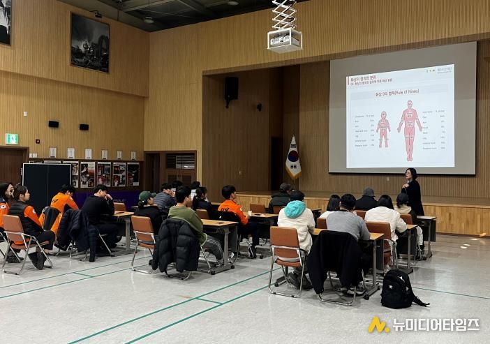 교육 과정에서는 화상환자 처치, 지혈대 사용법, 부위별 붕대처치 등 필수 응급처치 기술을 중점적으로 다뤘고, 이어 ‘병원 전 응급환자 분류체계(Pre-KTAS)’ 후속 교육을 통해 환자 중증도를 신속·정확하게 평가하기 위한 기준을 다시 확인하고 사례 기반 문제 풀이를 병행했다.