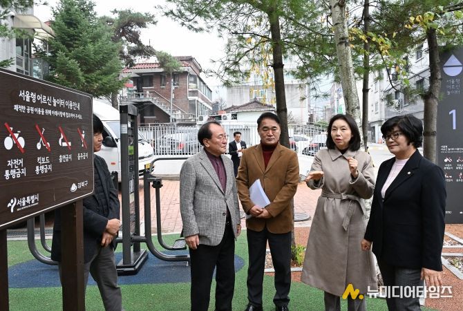먼저 최 의장은 강북구 강북문화예술회관 체육쉼터에 조성된 어르신 놀이터 시설을 둘러봤다.