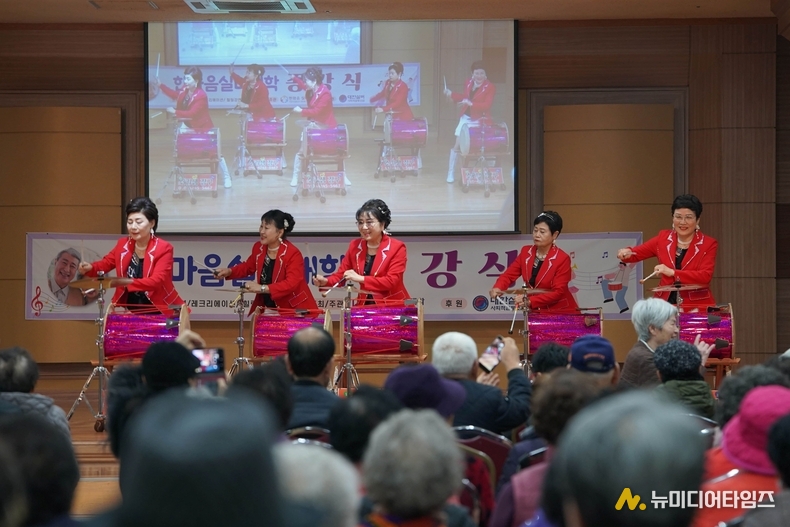 한마음실버대학이 주최하고 대한실버 사회적협동조합, 사단법인 월드브릿지가 후원한 이번 종강식은 실버대학의 올 한해 활동 영상 상영으로 시작됐다. 이어진 행사에서는 이재경 시의원의 축사와 함께 ▲건강 체조 ▲소리샘 문화공연단의 장구와 부채춤 공연 ▲소프라노 이조은과 첼로 이수민의 듀엣 공연 등 수준 높은 문화공연이 펼쳐졌다.