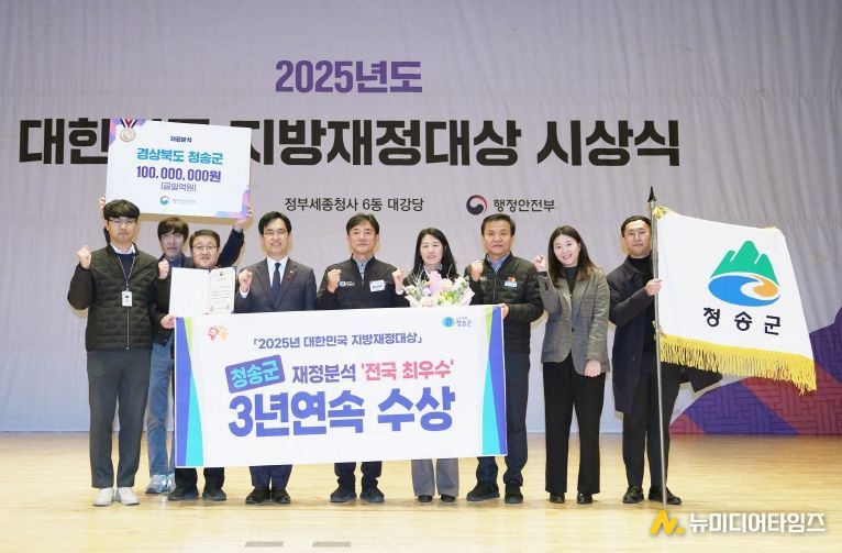 행정안전부는 전국 243개 지방자치단체를 대상으로 2025년 지방자치단체 재정분석을 실시한 결과, 청송군이 재정 건전성과 효율성을 고루 인정받아 ‘최우수 자치단체’로 선정됐다고 밝혔다. 이에 따라 청송군은 행정안전부장관 표창과 함께 특별교부세 인센티브 1억 원을 지원받게 됐다.