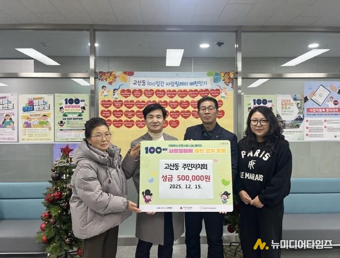 의정부시 고산동주민센터는 12월 15일 고산동 주민자치회가 저소득층을 위한 성금 50만 원을 전달하며 ‘100일간 사랑릴레이 배턴 잇기’에 참여했다고 밝혔다.