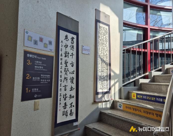 의정부시 송산2동주민센터는 올해 주민센터 1~3층 계단 옆 벽면을 활용해 ‘송2갤러리’를 운영했다.